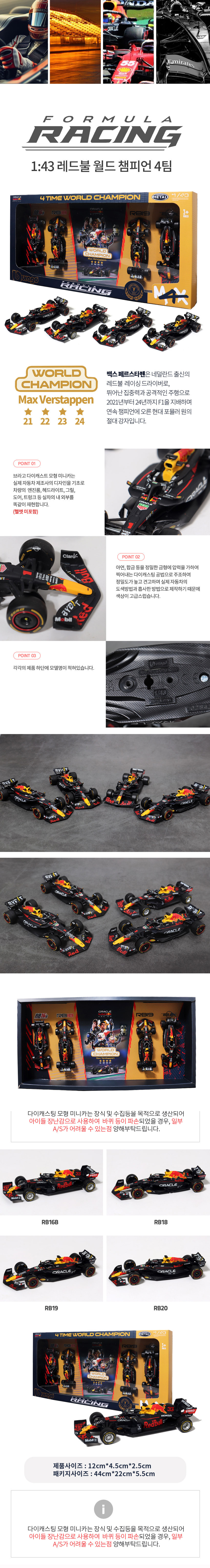 ▣ 제품명: 레드불 F1 레이싱-4세트 월드챔피온 4회 맥스 페르스타펜 브라고 컬렉션